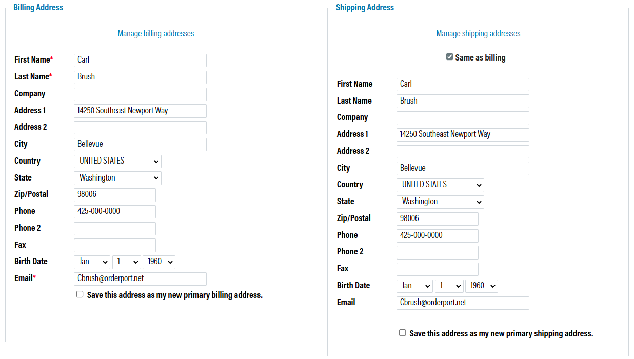 You can have multiple billing and shipping addresses, with one primary address for each type.