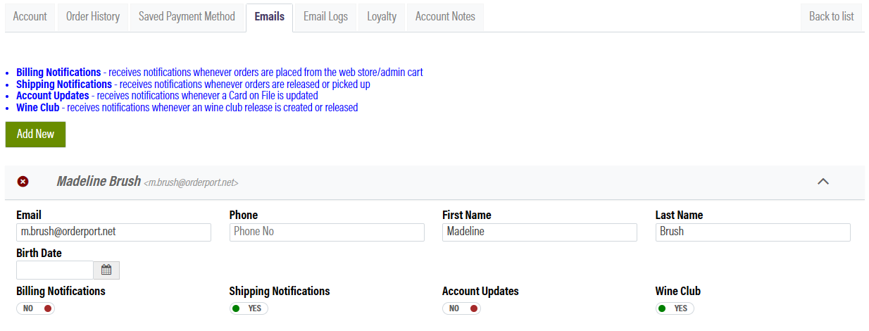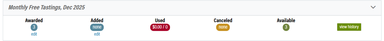 The loyalty tab allows you to view this customer's loyalty. View the Tastings, Samples, and Donations document to learn more.