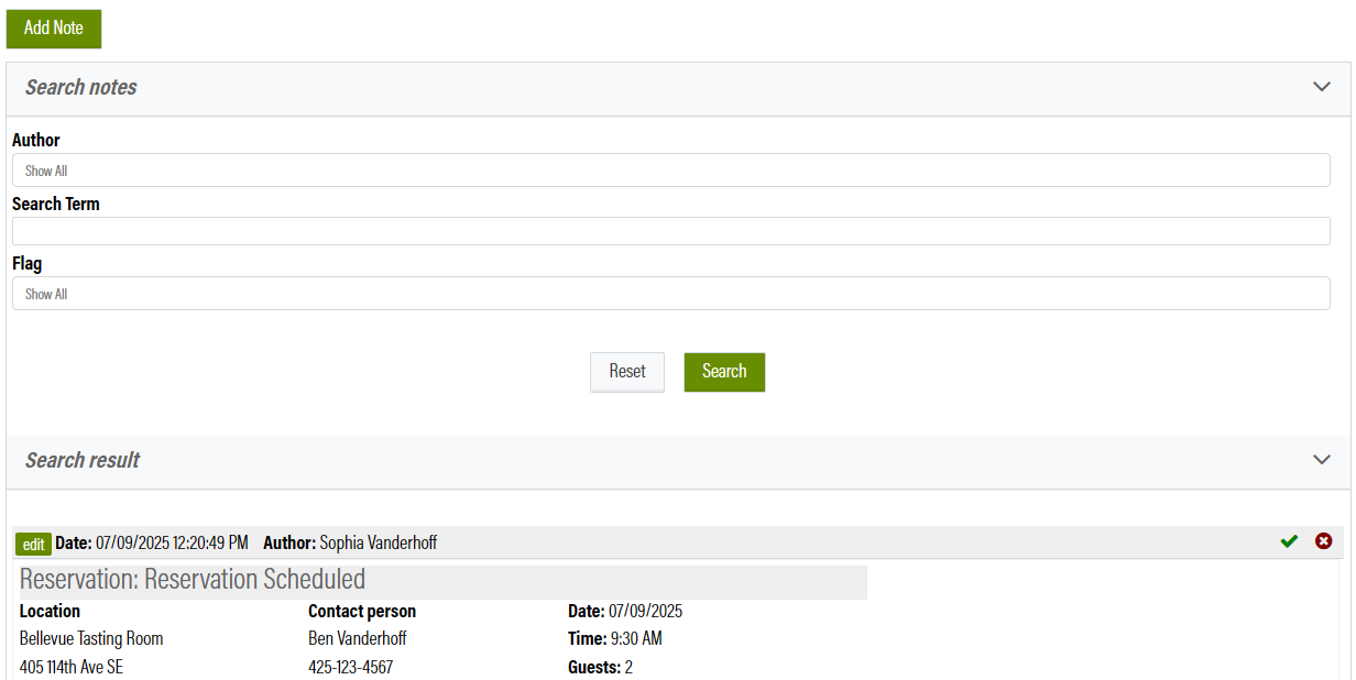 You can create and view account notes in the Account Notes tab. If set the flag of a note to Alert Clerk, it will display a notification on the Point of Sale when you open an order for the customer.