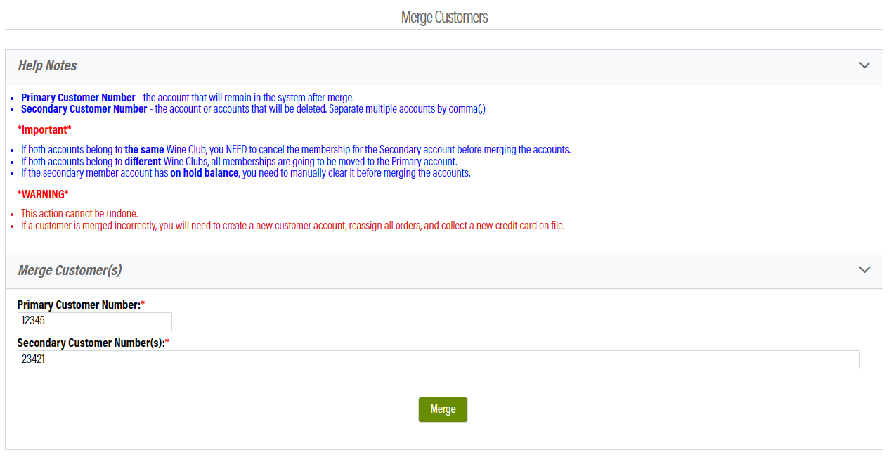 Read the help notes closely prior to completing a merge. This action is irreversible.