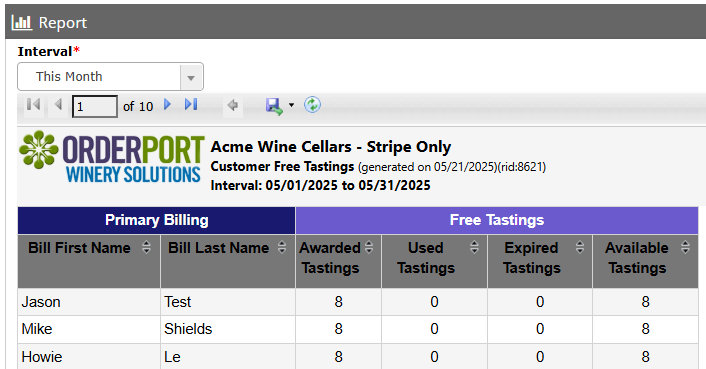 When running the report, ensure the interval spans enough time to include your last tracked free tasting renewal.