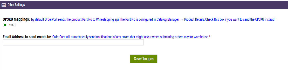 By default, the integration sends part numbers to Wineshipping. You can change this to the OrderPort SKU instead.