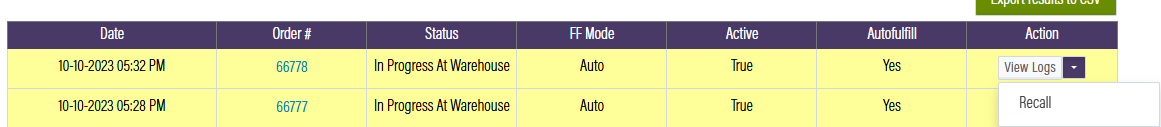 If an order has been sent to the warehouse, but is not yet shipped, you have the option to recall the order. Recalling the order allows you to make edits, then send the order back. You can also choose to fulfill the order yourself after recalling it.