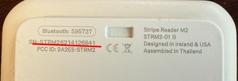 - Look on the back of your card reader to find the serial number. It will be printed in very small text. It should start with STRM