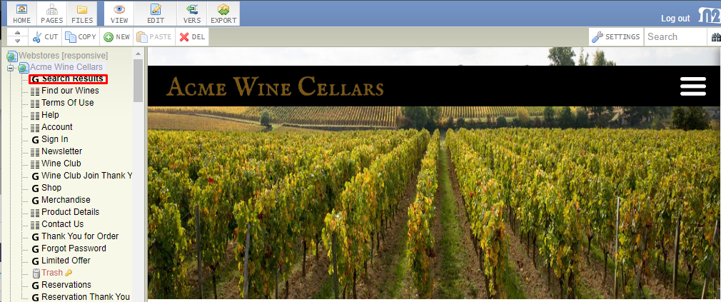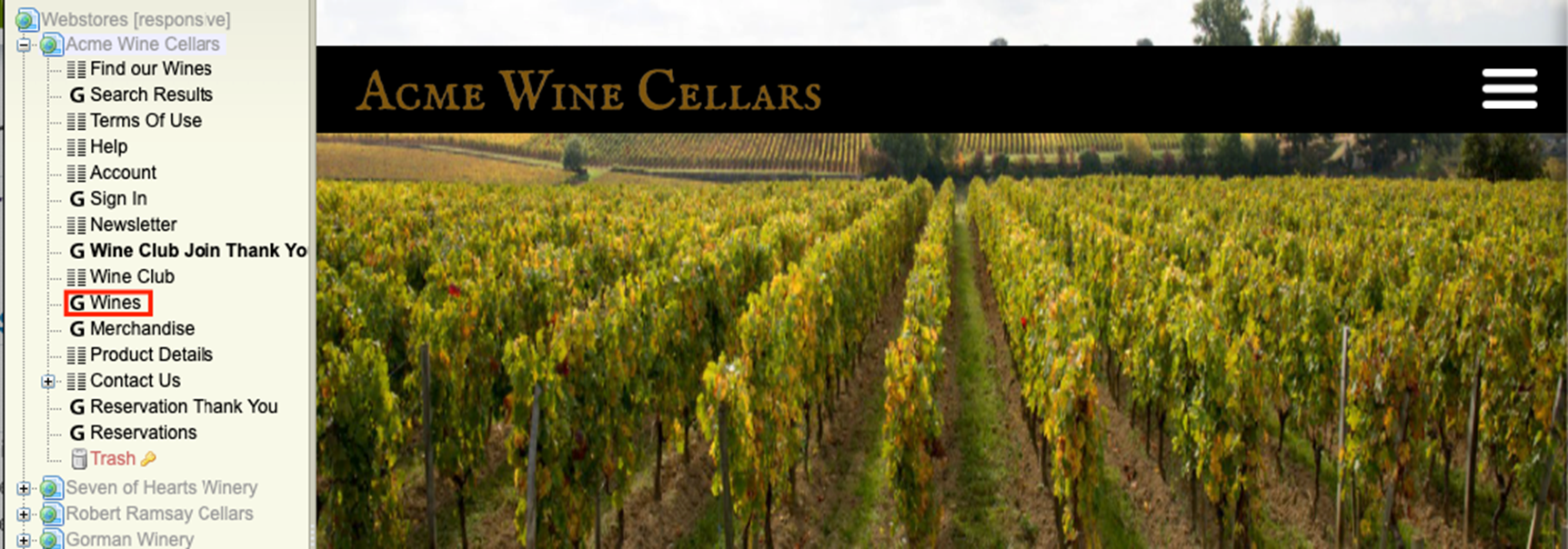 The Wines page is where you can edit what text displays on the Wines Group Pages and how many products will display.