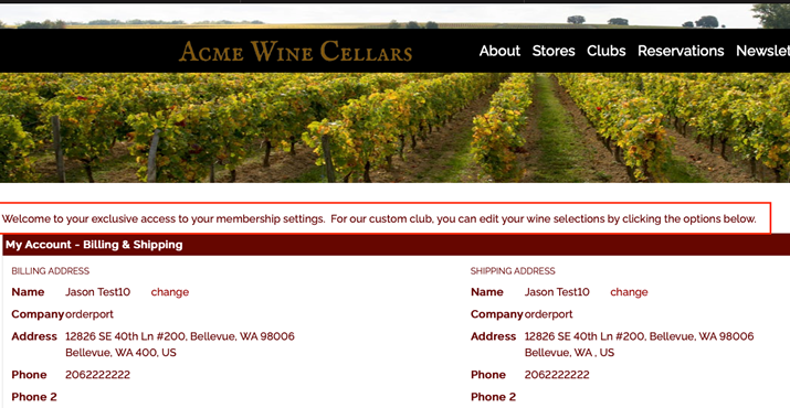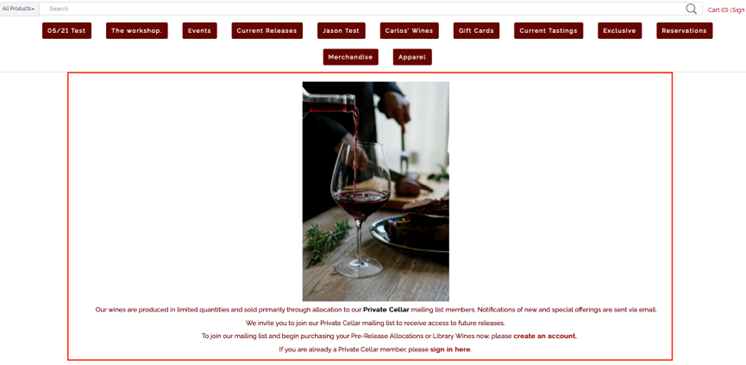 The Wine Club page is where you can edit what text displays on the Wine Club Selection Page.