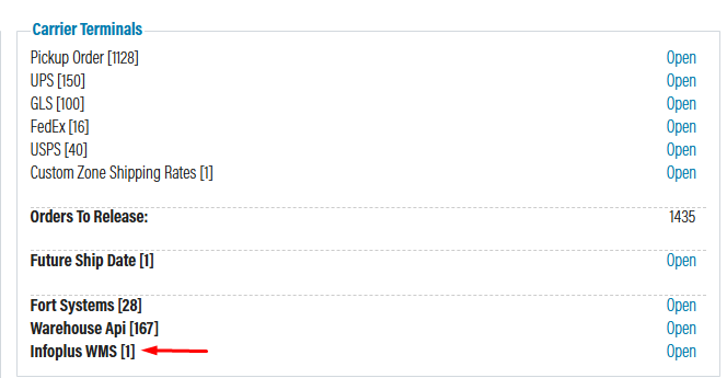 Orders will initially be in the To Import section. Once you finish inventory checks and push the order through, they will fall into the Infoplus WMS carrier terminal. For more information on the Fulfillment process, please see this document: Fulfillment Module Quick Guide.