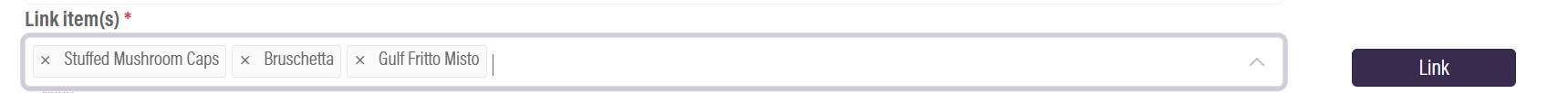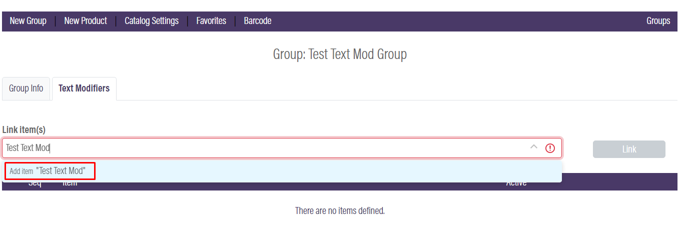 - In the Link Item(s) input box, start typing the text modifier you want to add.