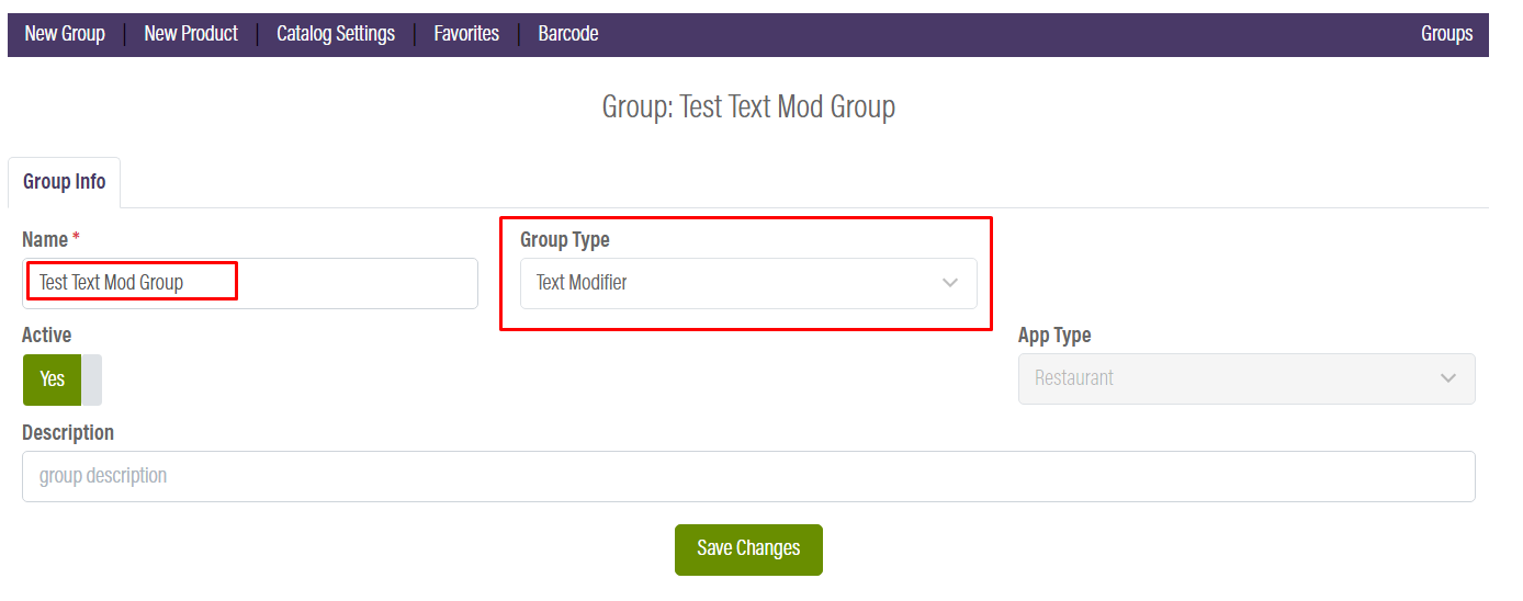 - Enter the name of the group and select the Group Type: Text Modifier.