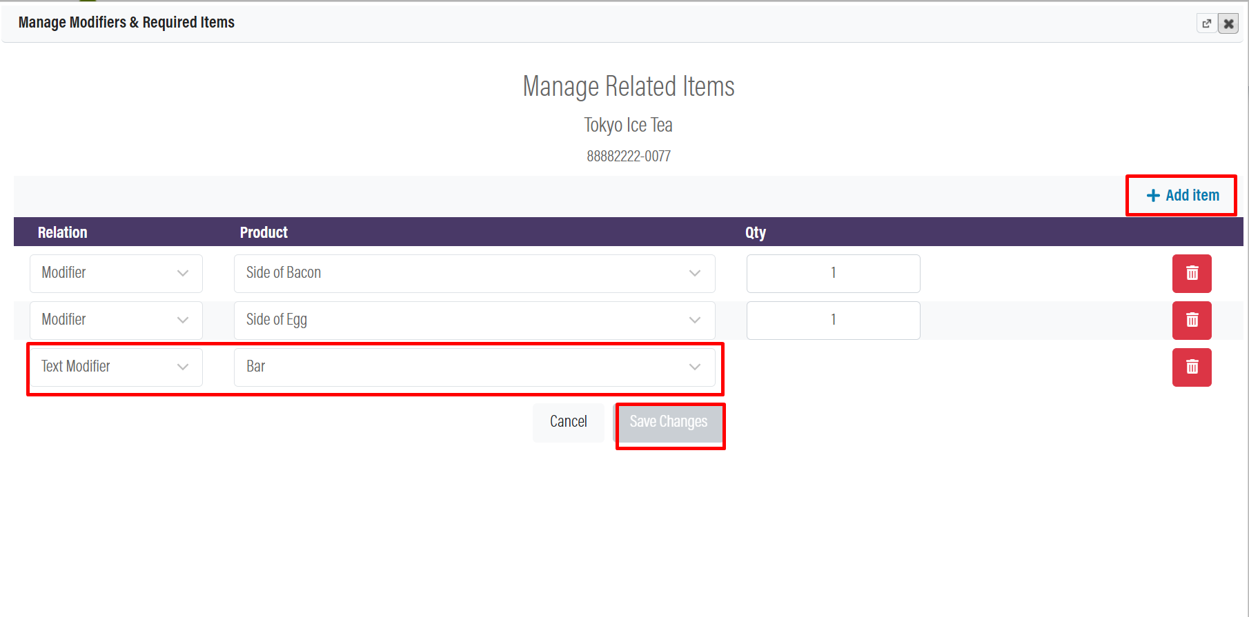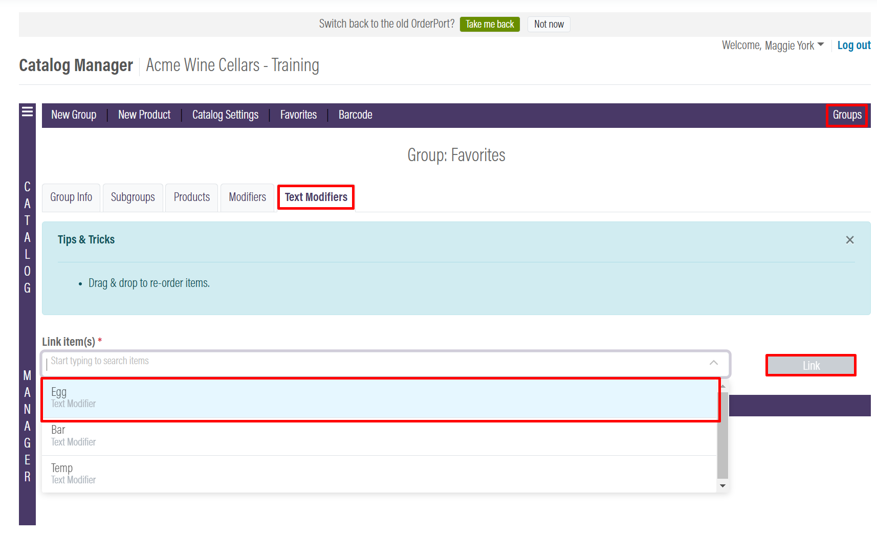 - Click Groups and Subgroups and add the item to your modifier group.