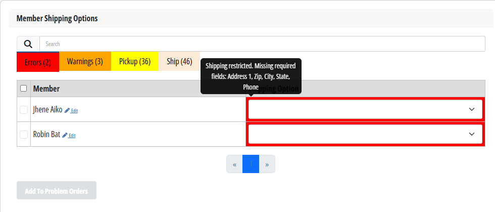 Solution: Select Fix Problems. This will take you to the customers' section of the wine club, where you can look for missing address information. If nothing is missing, check the address here. https://tools.usps.com/zip-code-lookup.htm?byaddress. Then make the customer as fixed.