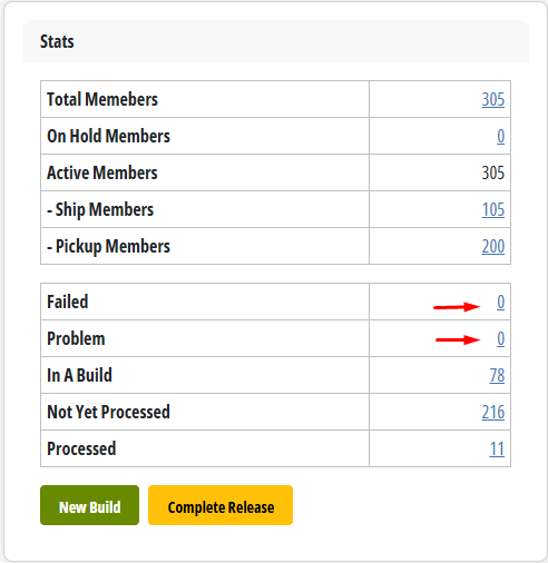 Click on your Wine Club > Release In Progress > Problem and Failed customers have a blue number to the right of them, which you can click on to see why they are in this section.