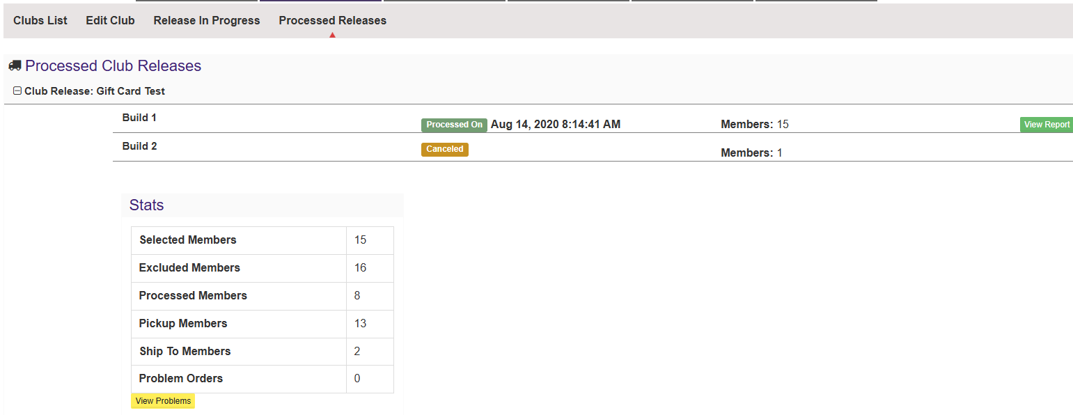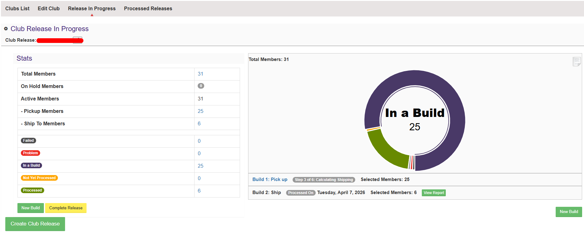 This tab is where you can access a list of all your active and processed club releases. After selecting a release, it will take you back to the Wine club > Release in Progress page to make edits to that release.