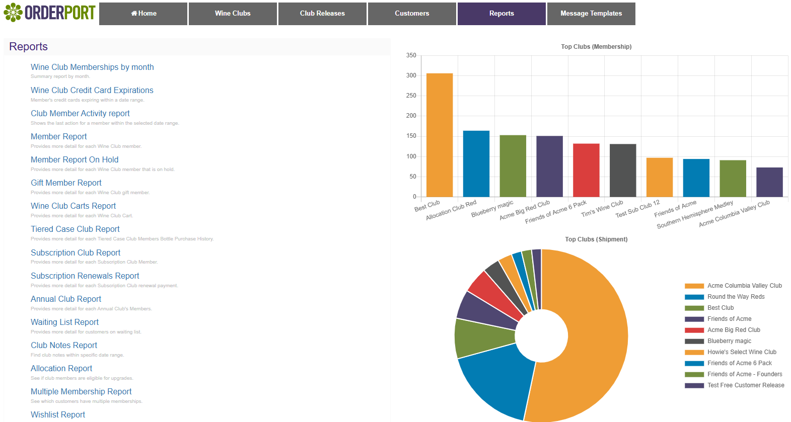 In this tab, you can review information on your wine clubs and wine club customers. There are 18 different reports available in this tab.