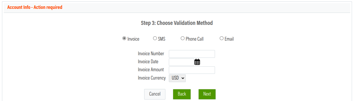 In Step 3, you must verify your account. If you choose to verify using an invoice, it must be no older than six months.