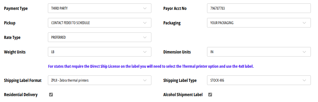 Use of an electronic shipping solution. You must create your shipping label using an up-to-date FedEx Ship Manager® electronic shipping solution or a FedEx-approved third-party system. (This is part of the integration with FedEx and OrderPort) Airbills are not permitted. You must identify all alcohol shipments by selecting the alcohol checkbox on your shipping software.