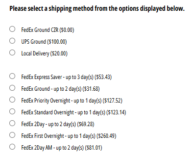 FedEx Error - FedEx: "We're sorry! Shipping options are unavailable at this time!"