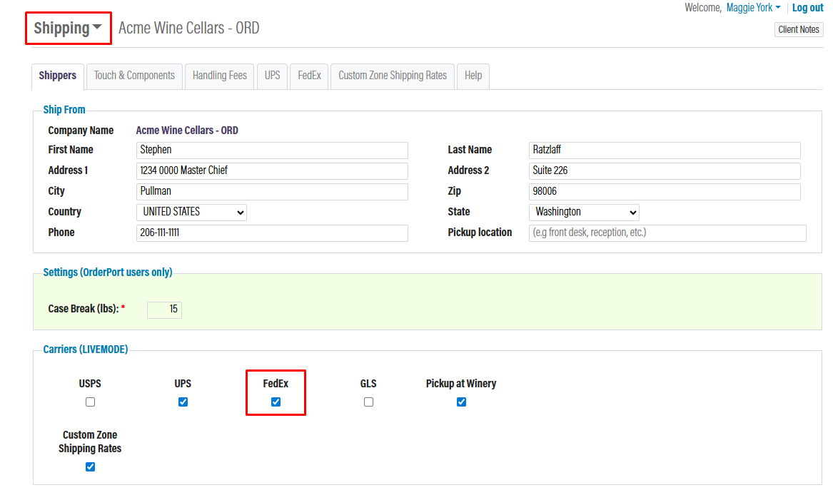 Go to the Shipping module in OrderPort Admin under the settings tab. In the Shippers tab, it must be enabled in the Carriers section. Once enabled, click "save. It will now appear as a separate tab in the module.