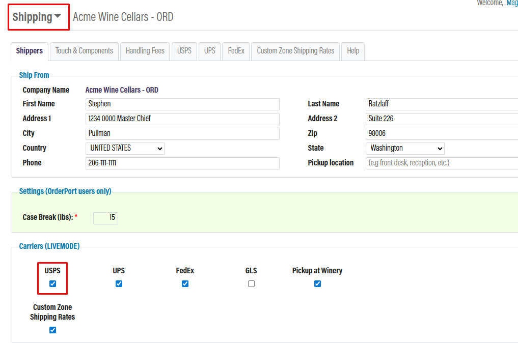 Under the Carriers section, enable USPS, then go to the USPS tab (the tab will appear once you enable USPS).