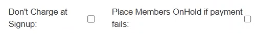 You can choose not to charge members upon sign-up, and you can also choose to place members on hold if payment fails.