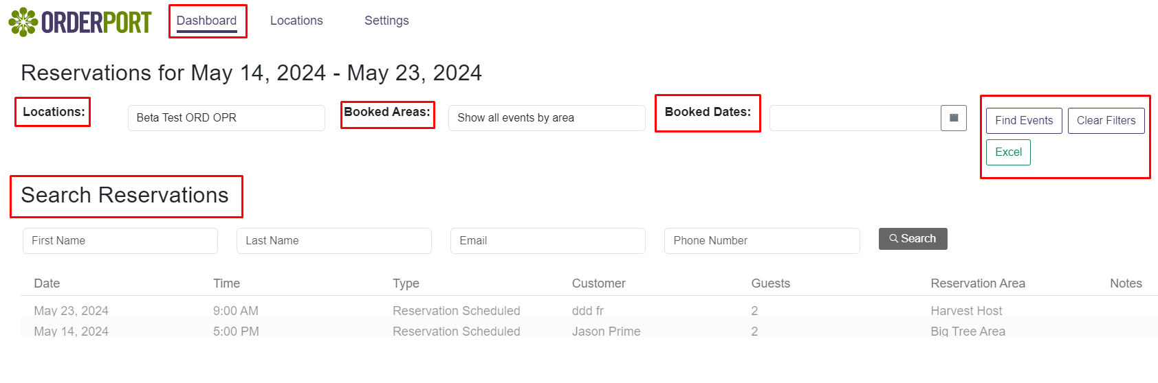 The Reservations tab provides a monthly calendar view of all bookings. Click on a specific day to see that day’s reservations listed on the right-hand schedule. From here, you can confirm, edit, or cancel reservations. To edit or cancel a reservation: