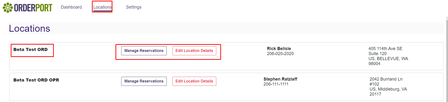 Under the Locations tab, you will find each of your tasting room locations. After selecting manage reservations you will be brought to manage reservations for all areas within this location. With this update, there are two new and unique ways to manage these reservations. The page is broken up into two tables: Timeline and Service. Then you have the date you are managing and the option to create new reservations.