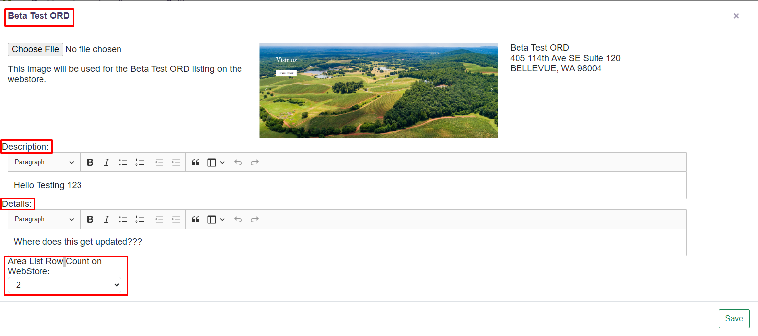 The Reservations Landing Page is the first thing customers will see when they click your reservations link. This will have a description of your winery, your policies, and list each location available to book. If you need to edit the language on this screen, navigate to the Webstore Designer. You will find it under the Services tab in OrderPort Admin.