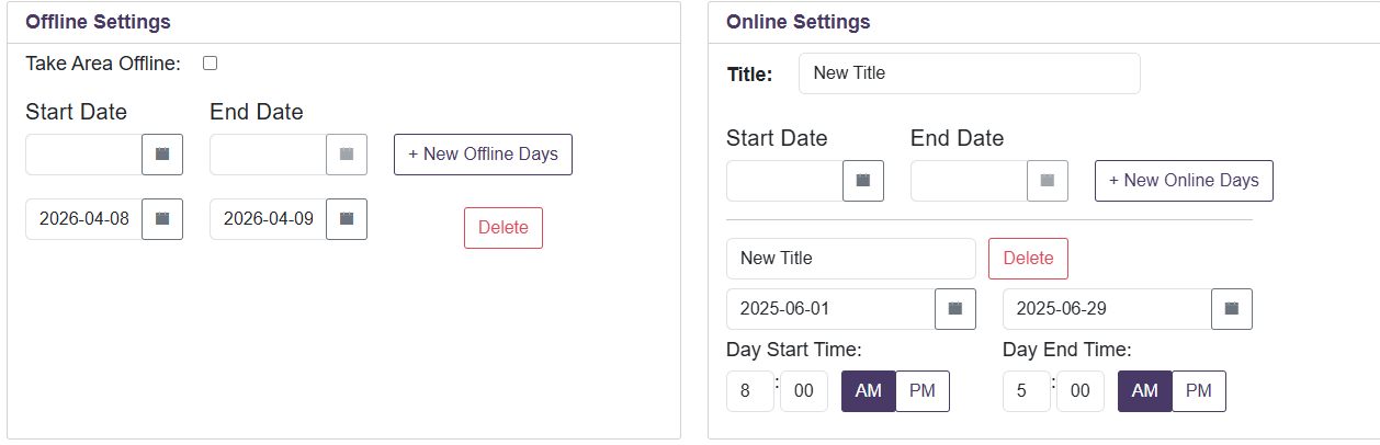 In order to delete a reservations area you must contact helpdesk@orderport.net and request that this area be deleted. Please take the area offline in the offline settings tab or the desired area. Please also rename the area to "Delete Me" This way it is easier for our staff to locate. It is also important to note that once a reservation area is deleted, it can not be retrieved and all future reservations will be deleted along with the area.
