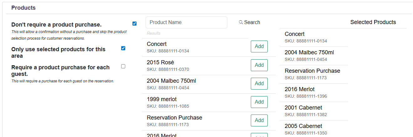 Only Use Selected Products for This Area: If you are using product purchases, this setting must be turned on. Once activated, you will be able to add items to the selected products tab.
