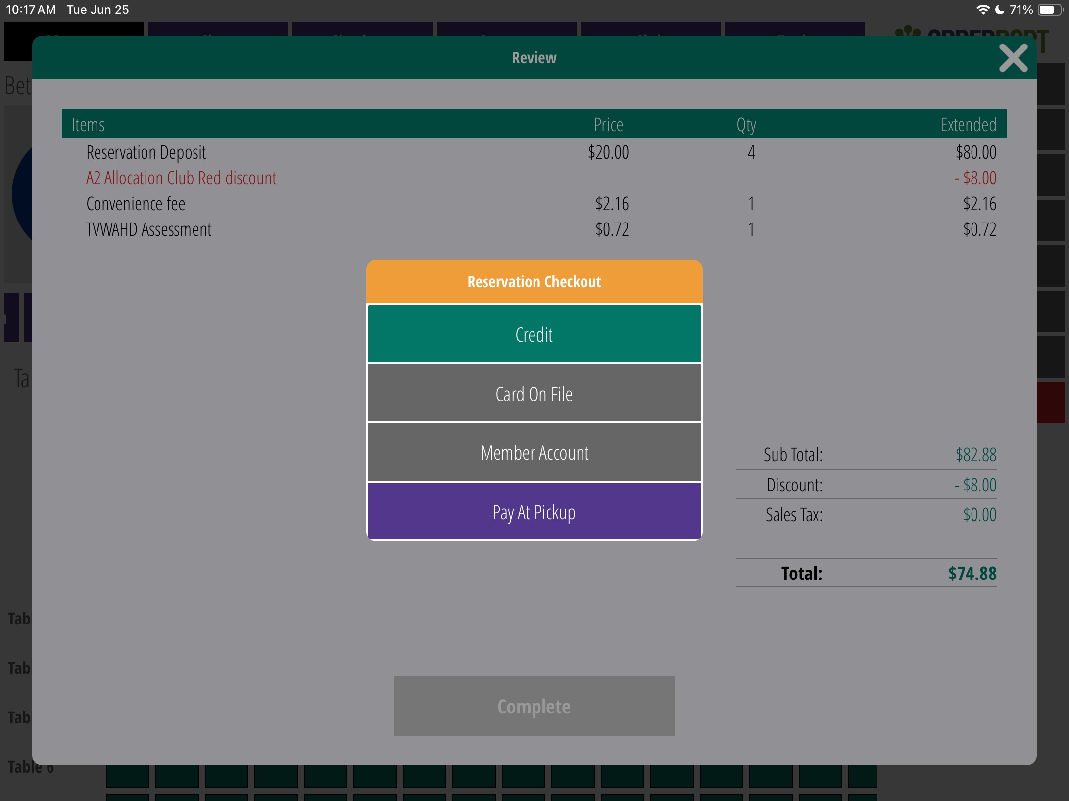 If you select products with a deposit required, it will bring you to a new screen with the total the customer owes. After getting approval from the customer, select complete, and it will ask you to select a payment method.