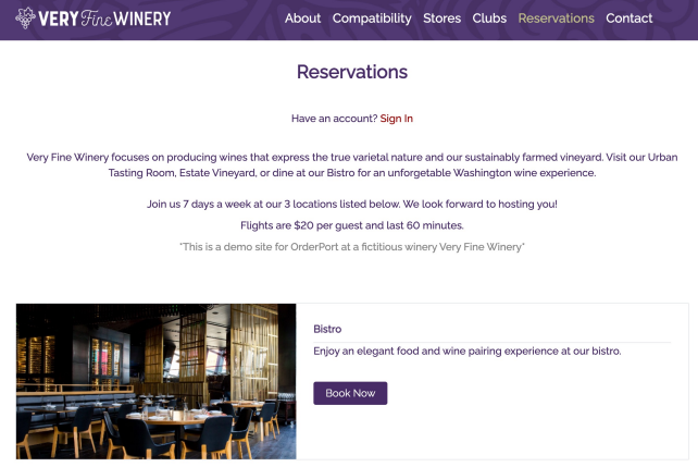 The OrderPort Reservations module is a paid feature that we offer, allowing you to create and manage reservations for your winery. It will include a new module, webstore page, and app functionality. The OrderPort Reservations Module enables customers to conveniently schedule order pickups and make tasting room reservations online and by phone. The online customer interface is built by OrderPort with a responsive design for optimized viewing on mobile devices, and the winery's website design is used for a consistently branded customer experience.