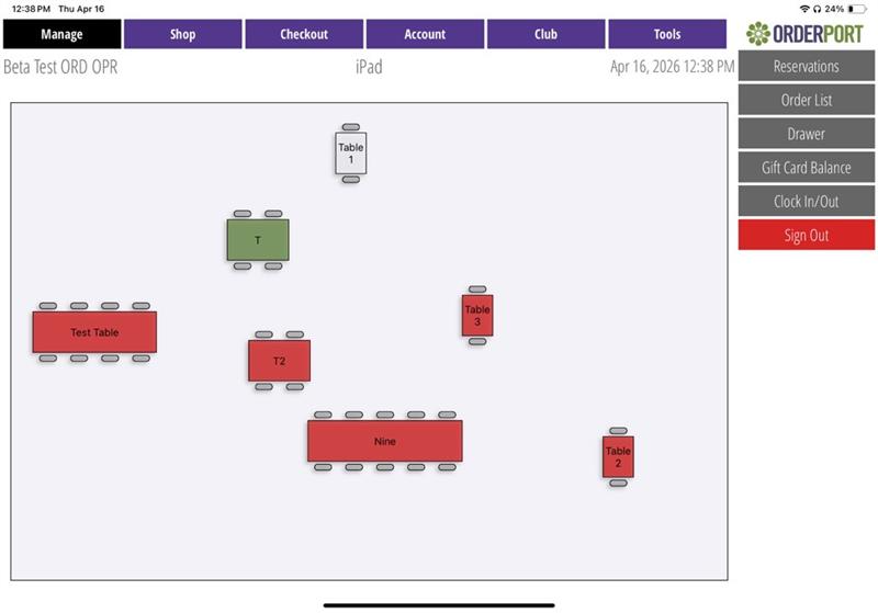 Table Map Starting Screen: In the Point of Sale module on OrderPort administration, you have the option to select the landing page. Under the settings tab, set the landing page for each location to be Table Map.